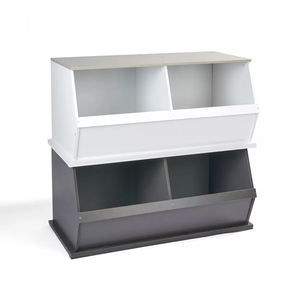 Modernize your toy storage with the help of these stackable two bin Badger Basket cubbies.