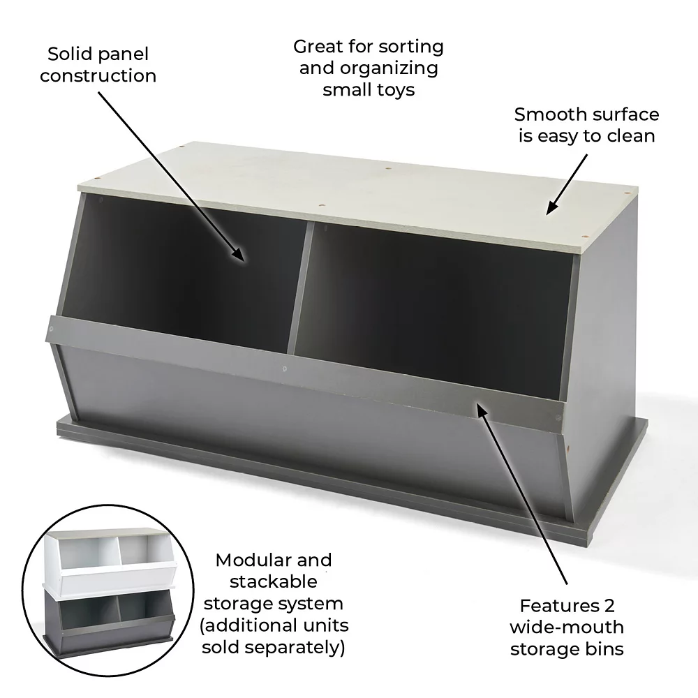 - Two wide-mouth bins allow you to easily separate and categorize everything from toys to blankets