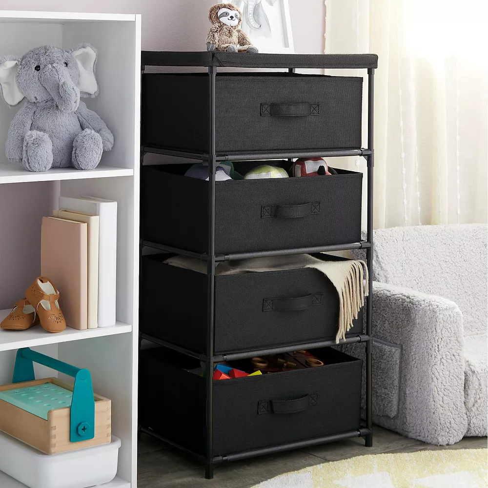 - Dresser Drawer: These black storage drawers for clothes are great for any room in your home, office, or school settings