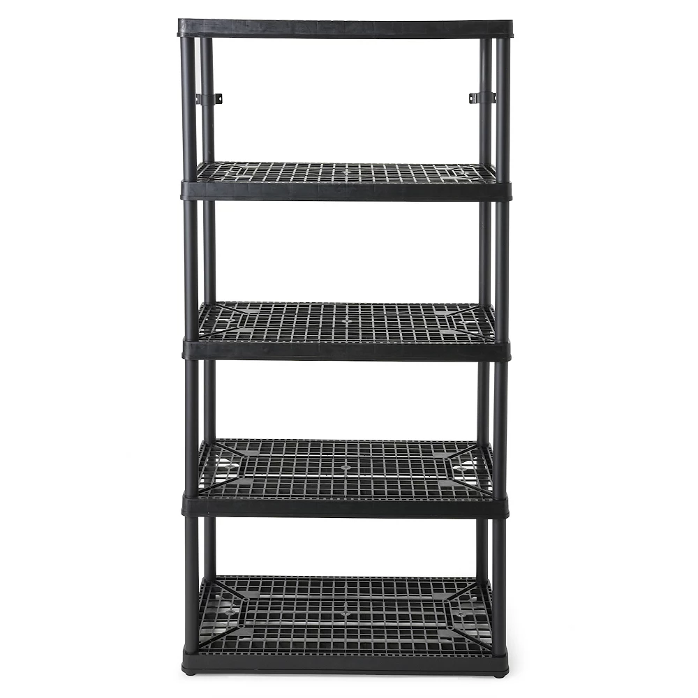 This 5-tier storage shelf features durable resin material that will never rust, dent, or peel, making it perfect for both indoor or garage use. With its simple, no-tool setup, lightweight body, and black coloring you can easily make this storage unit work in any room of the house.