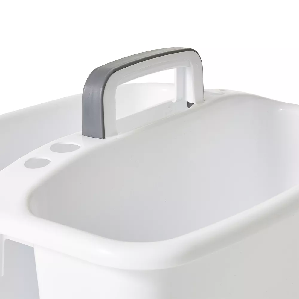 - Includes 1 plastic storage tote caddy with gray carry handle