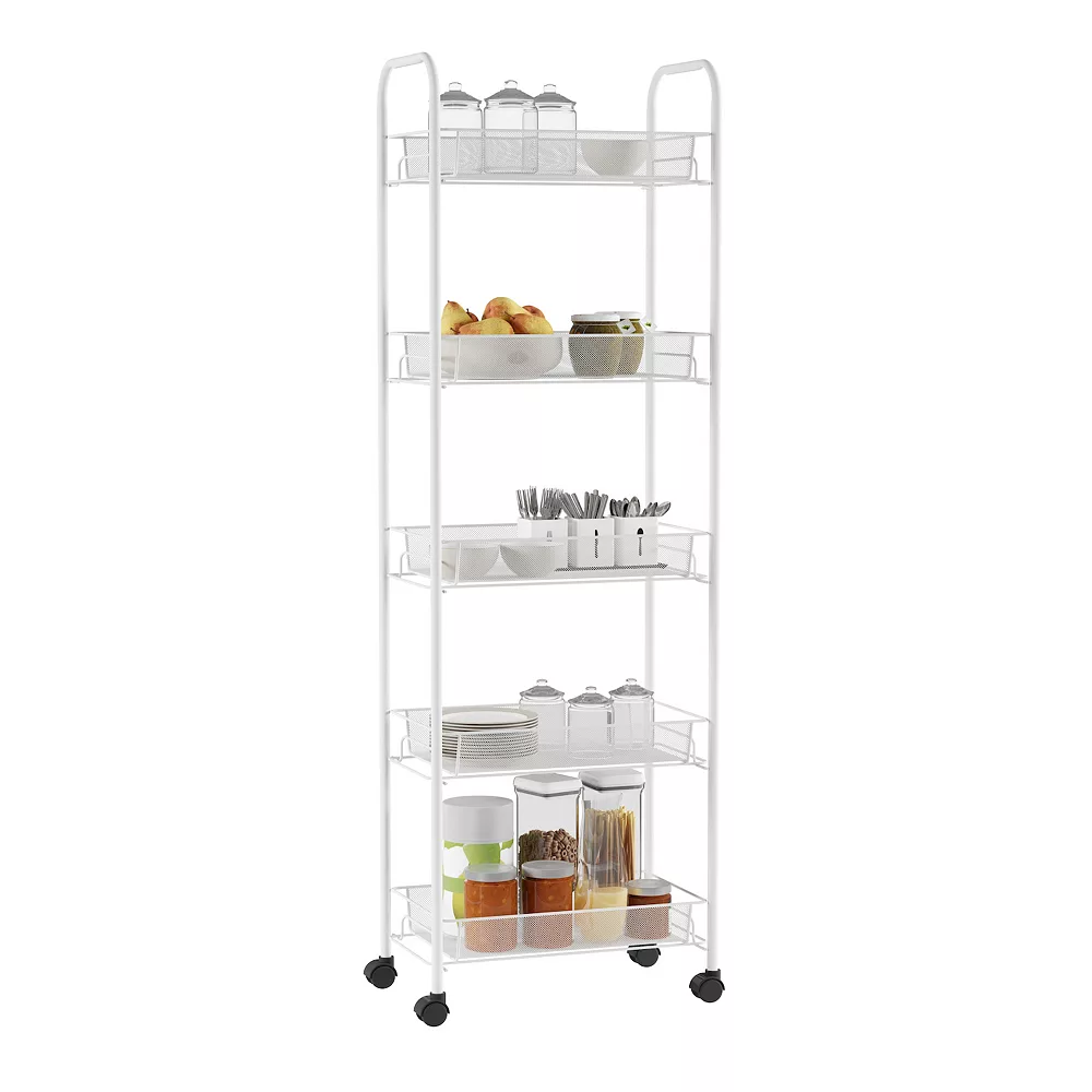Easily organize your house with this Hastings Home 5-Tiered Narrow Rolling Storage Shelves.