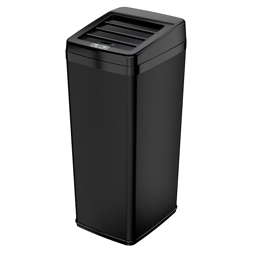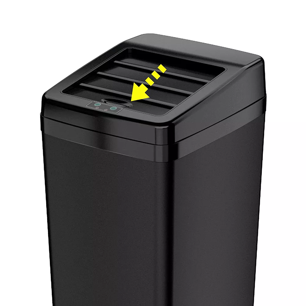 - Sensor-operated lid automatically slides open when your hand or debris comes within six inches of the infrared sensor.