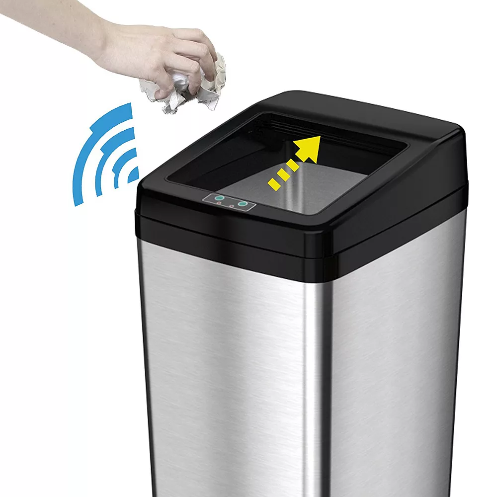 Keeping your kitchen clean is easy with this iTouchless touchless trash can. The space-saving receptacle opens and closes automatically for touch-free, germ-free use. Shop our wide array of convenient home solutions at Kohls.com.