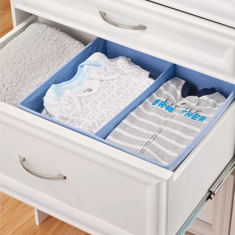 This Fabric Drawer Organizer by mDesign is the perfect solution to conquering cluttered nurseries, dresser drawers, bedrooms and closets. It creates customized, coordinated storage so you can keep all of your baby’s daily essentials at your fingertips. The open tops make contents easily visible and accessible even when you have your hands full. Use it to organize the closet, changing table, dresser top, drawers and any area in need of a little organization!