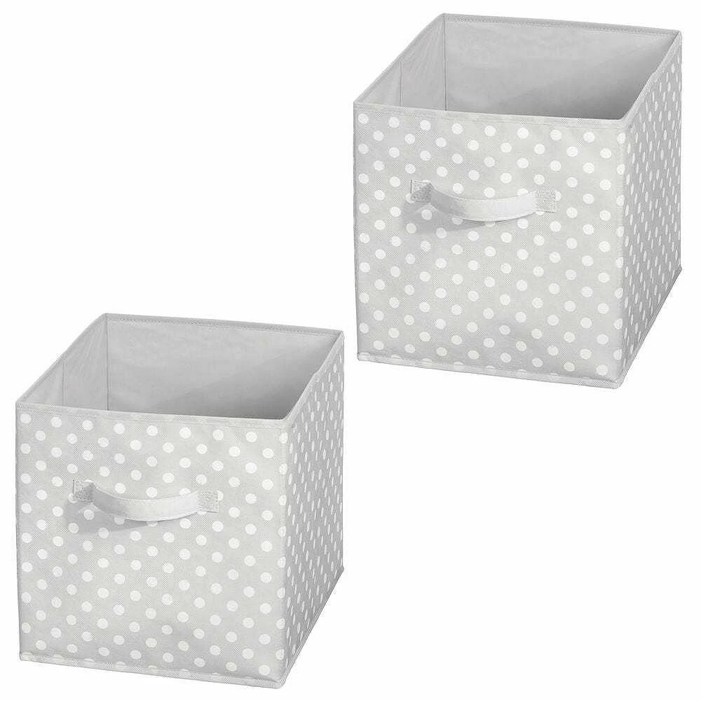 These Fabric Storage Boxes by mDesign are perfect for keeping your nursery closets organized and clutter-free. They offer roomy space for storing blankets, onesies, stuffed animals, diapers, and other necessities. The attached handle makes it easy to move the organizers on and off closet shelves. Its polka dot pattern offers a fun and fashionable look to any bedroom closet, laundry area or other storage space in your home.