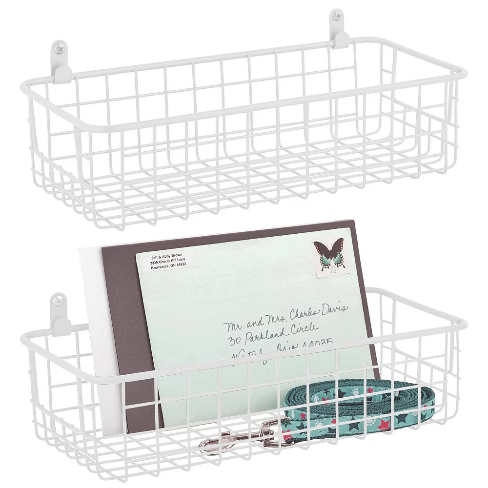 Add instant storage to your home with this Portable Storage Basket with Hooks from mDesign. The tray basket arrives with hooks that are mounted to the wall, so you can hang your storage basket and retrieve it when you need it. This bin adds extra storage in an entryway, mudroom, laundry area, kitchen, bathroom or anywhere around the home. The steel wire construction provides stability and a modern look to a wall space while putting convenient storage at your fingertips. mDesign – Solutions for Home. Solutions for Life.