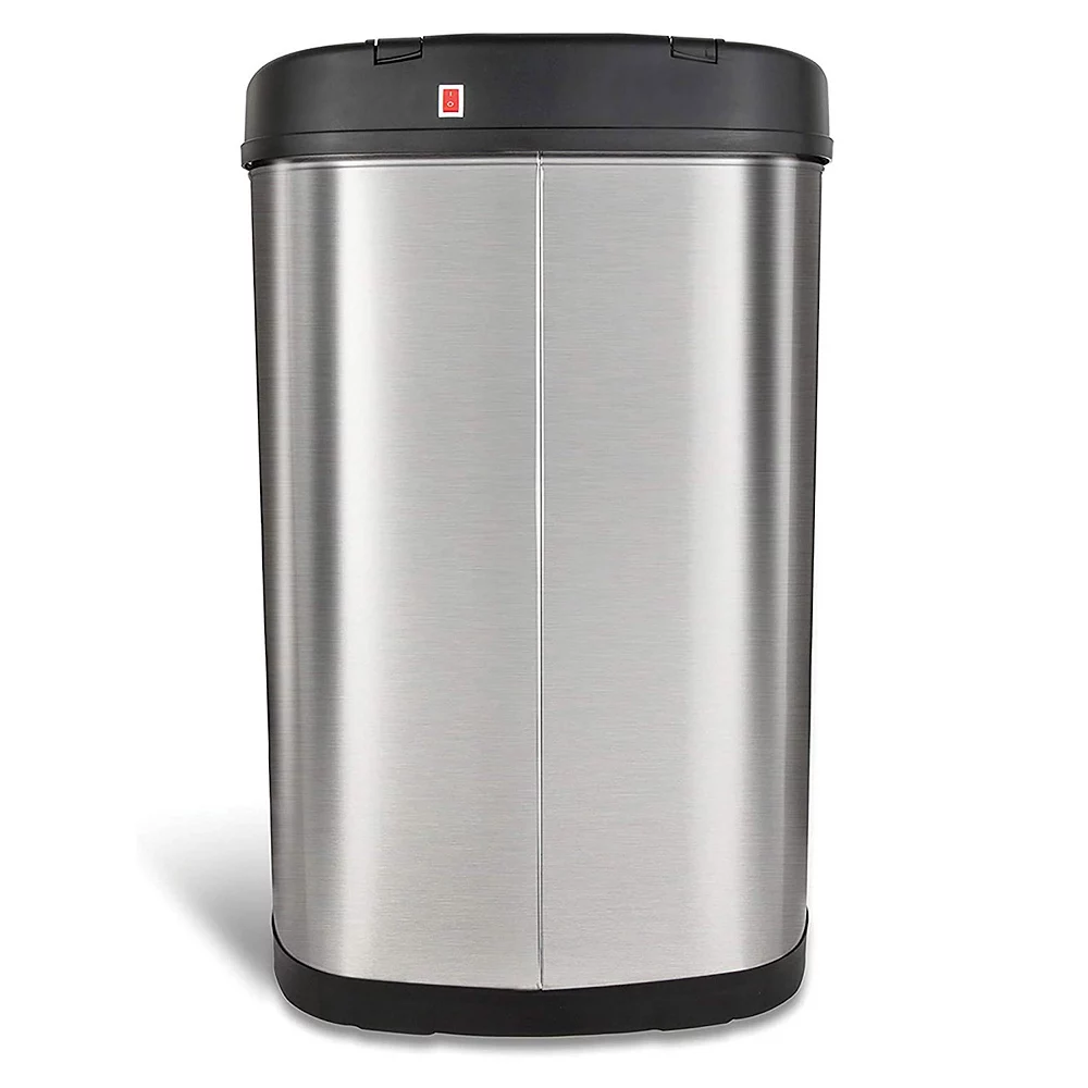 - Motion sensor trash can quietly opens with the wave of the hand for a hands-free way to throw away garbage