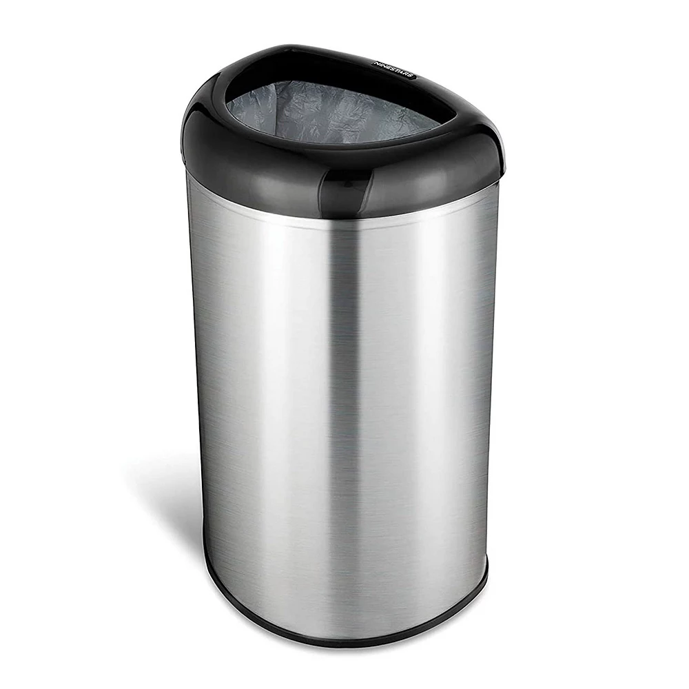 Keep your garbage out of sight with the 13-Gallon Semi-Round Open Top Trash Can from NINESTARS. This compact garbage can ensures your trash stays out of the way in your kitchen, living room, pantry, or dorm.