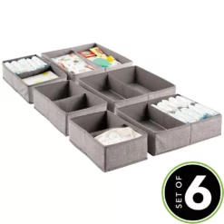 MDesign Fabric Dresser Drawer/Closet Storage, 2 Section Tray – 3 Pack
