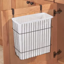 MDesign Wire Over Cabinet Door Kitchen Storage Basket & Trash Can – 2 Pack