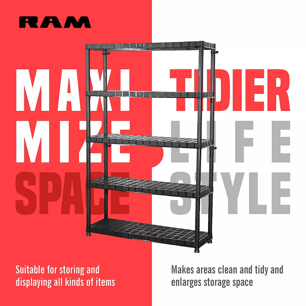 Take the clutter out of your home or garage and spark more joy in your living space with the Ram Quality Products Extra 5-Tier Plastic Storage Shelf Unit for Garage.