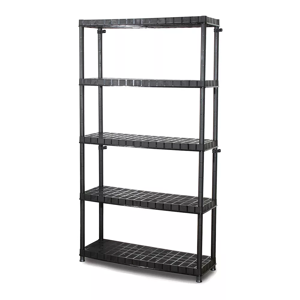 These storage shelves are TUV tested, which means you can rest easy knowing they were crafted with safety top of mind. And with a weight capacity of 130 pounds per shelf, you can load your new unit to your heart’s desire. Take the clutter out of your home and spark more joy with the Ram Quality Products Optimo 16 inch 5 Tier Plastic Shelves, Black.