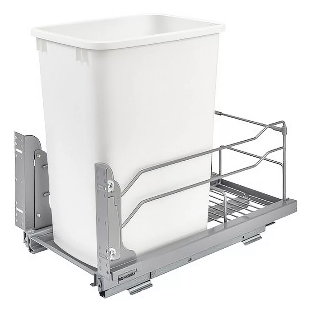 Thanks to this Rev-A-Shelf 35-Quart Pullout Waste Container, your kitchen will have a clean look while your trash is out of sight and out of mind.