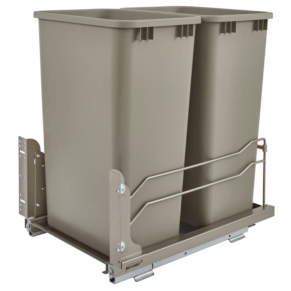 - Keep your kitchen waste hidden but easily accessible with this double 50-quart pull-out waste container