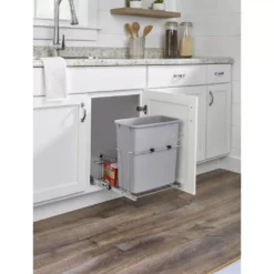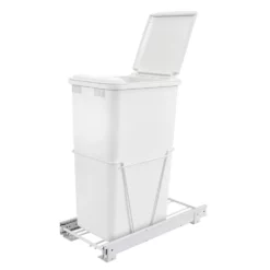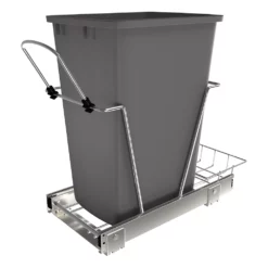 Once you’ve got this pull-out bin set up, this trash container slides effortlessly on a progressive roller under-mount slides. This trash container’s modern wireframe even complements your kitchen, while the durable, powder-coated finish lasts the long haul. Enjoy a spacious, functional kitchen, thanks to the Rev-A-Shelf Pull-Out Trash Bin.