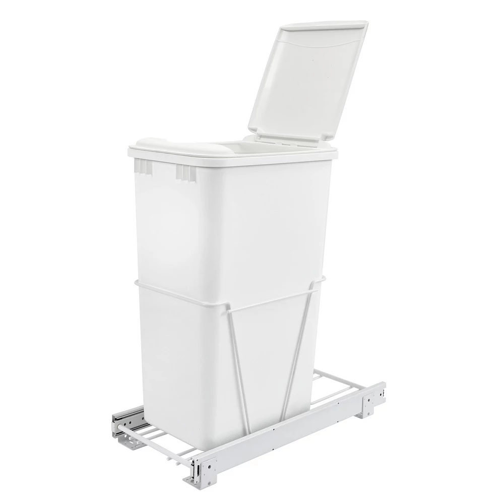 Say farewell to the eyesore of every kitchen. Flawlessly hide your garbage thanks to the Rev-A-Shelf Single 50-Quart Mounted Pullout Waste Bin with Lid.