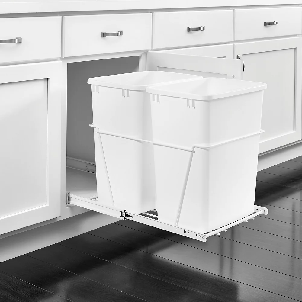 When it comes to home decor, your trash container can pose as a challenge. If space and aesthetics are an issue, then you need the Rev-A-Shelf Double 27-Quart Pull-Out Trash Container Bin.