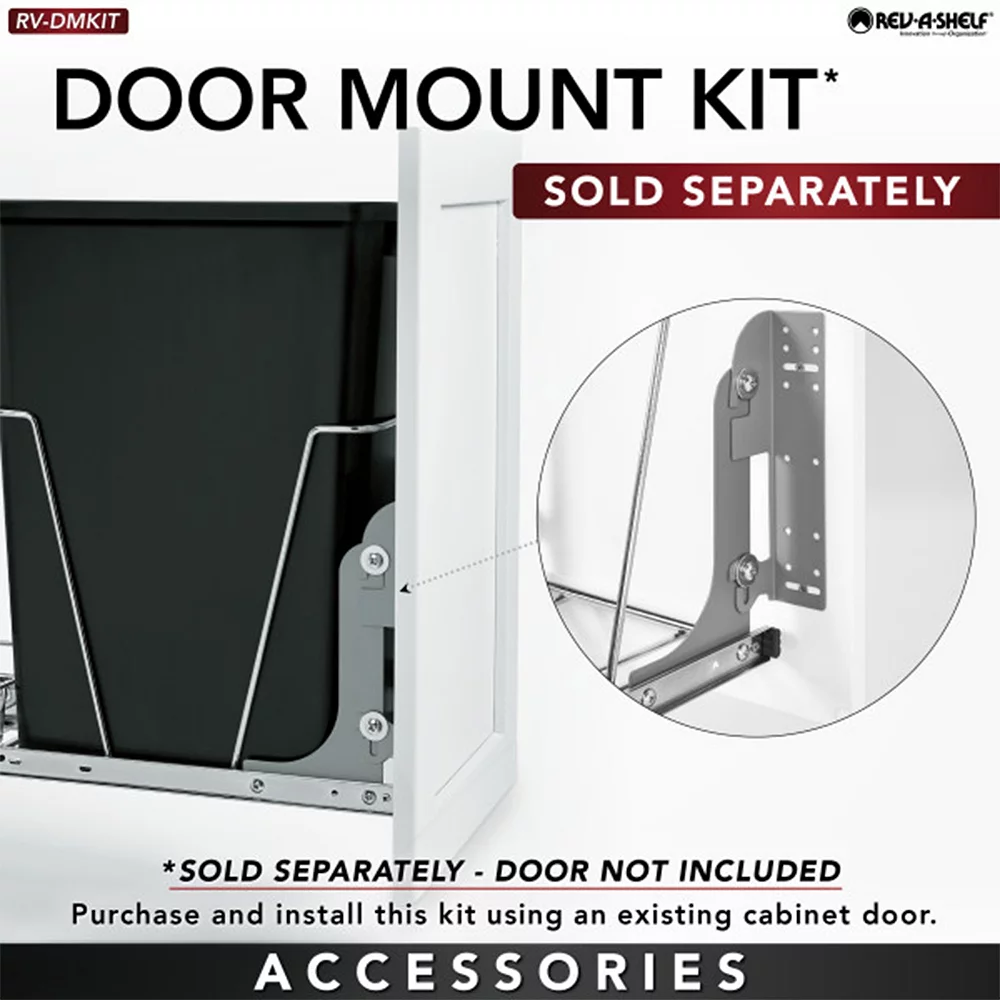 This space-saving trash container comes with all the hardware you need to install an under-the-sink pull-out trash can. There is an easy to install design for no-fuss set-up. This trash container includes 2 27-quart waste containers with white mounting hardware. The cabinet door face, lids, and optional door mount kit are not included.