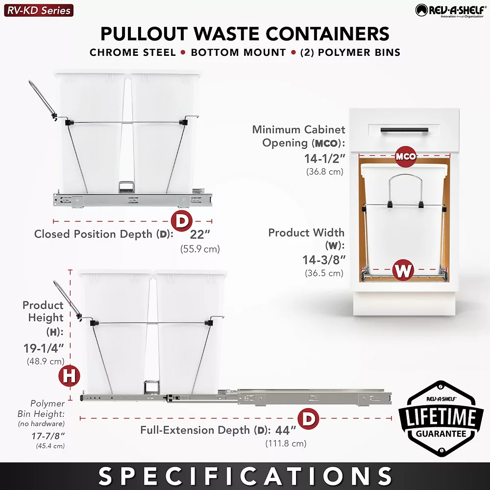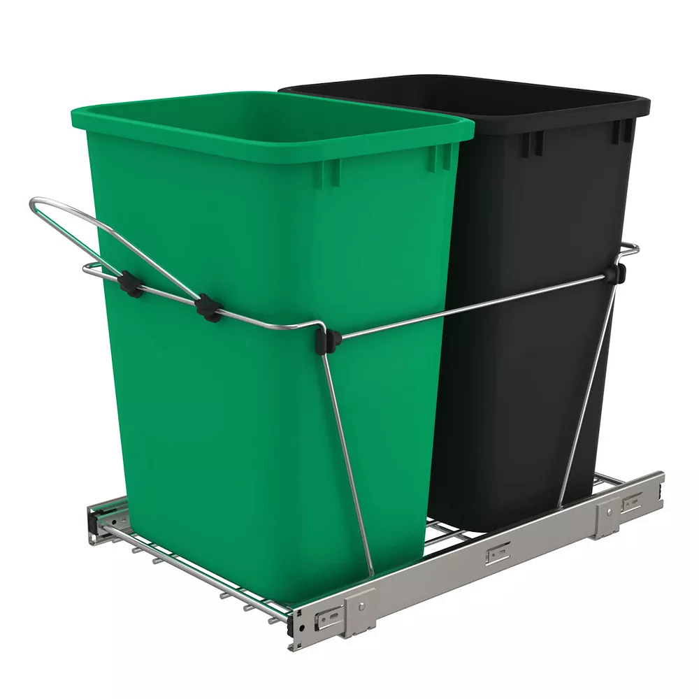 Keep your kitchen neat and clean while conserving space with the Rev-A-Shelf Double 35-Quart Pull-Out Waste Container.