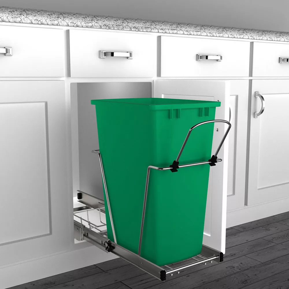 - Keep your kitchen waste container hidden but easily accessible with this single 35-quart pull-out system