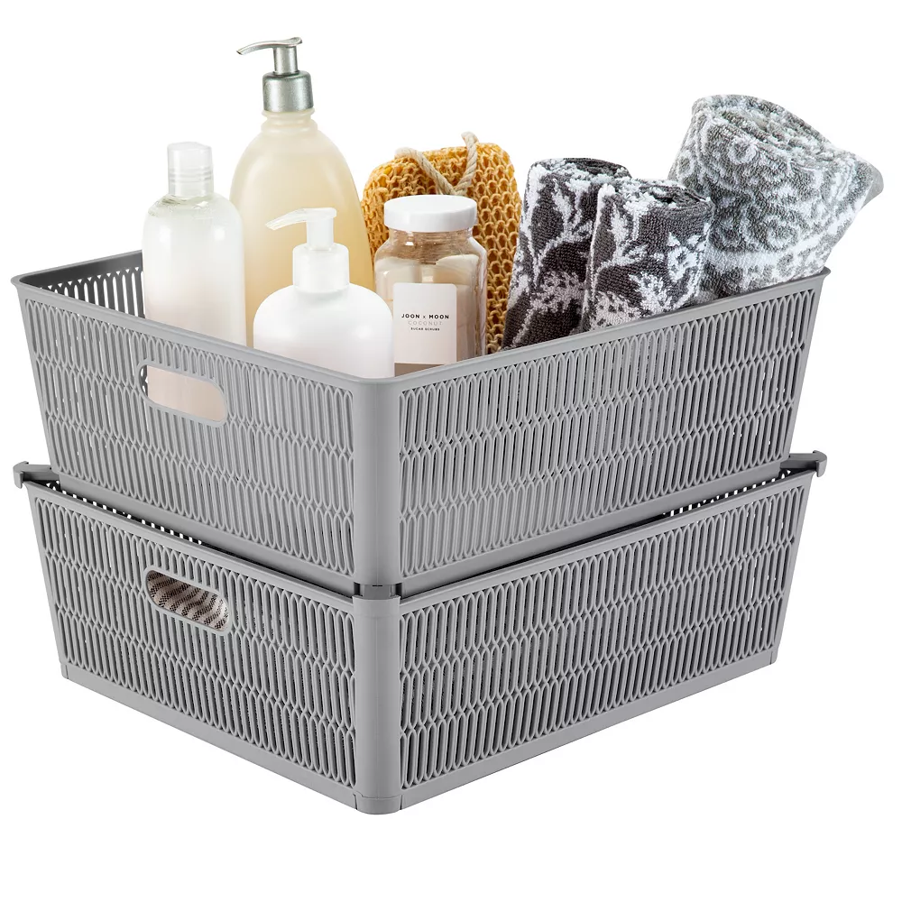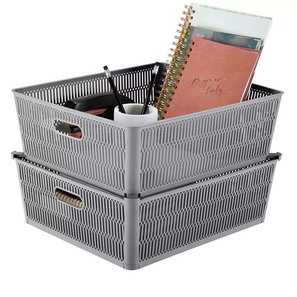 Easily organize your house with this Simplify 2-Pack Slide to Stack Shallow Storage Tote Set.