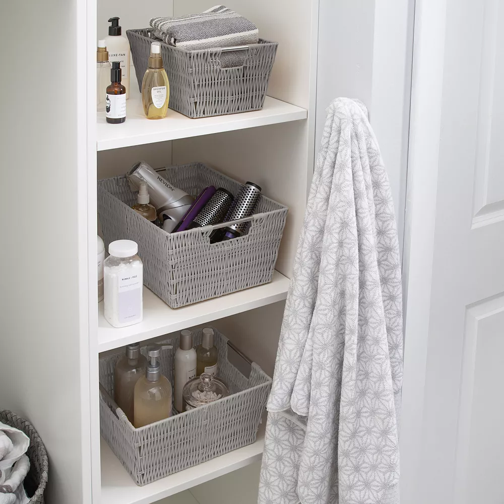 Easily organize your house with this Simplify 3 Pack Set Rattan Tote Baskets.