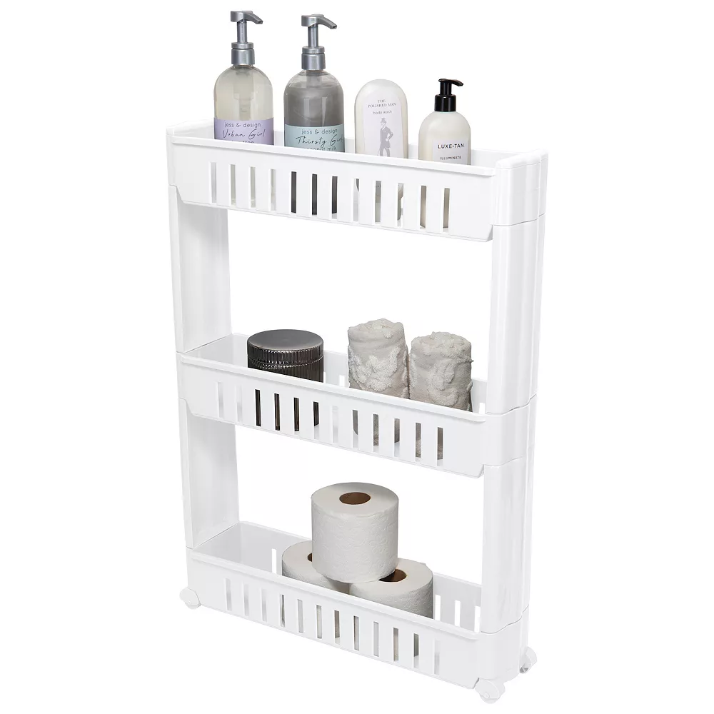 Utilize every inch of space with the help of this Simplify 3 Tier slim slide out storage cart.