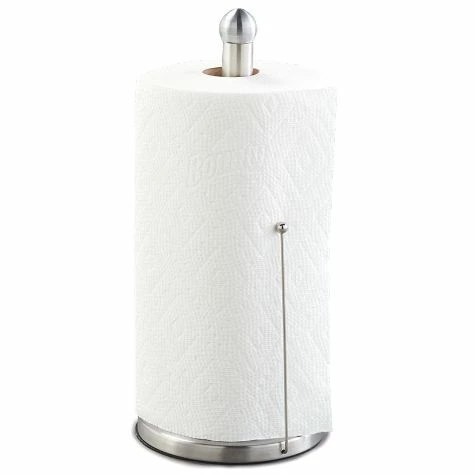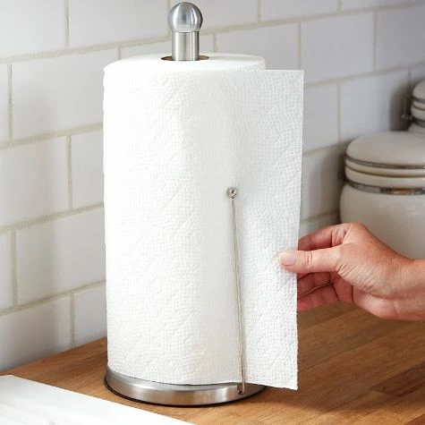Pull off only as many sheets as you need with this Stainless Steel Paper Towel Holder. Its unique design features an arm that holds down the number of sheets you want and keeps the roll from releasing too many sheets. Made from: Stainless steel and polypropyleneMeasurements: 7-7/8″ dia. x 13-3/4″HNotes: Easy assembly required