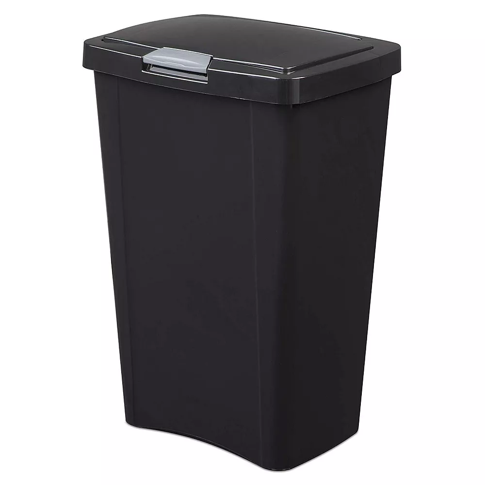 Ensure that you have a designated place to keep your trash with the Sterilite 10459004 13 Gallon TouchTop Wastebasket with Titanium Latch.