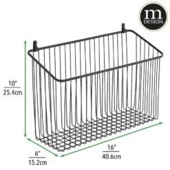 MDesign Metal Wall Mount Hanging Basket For Storage, Small – Matte White
