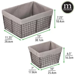 MDesign Metal Household Storage Basket With Fabric Liner – Set Of 3